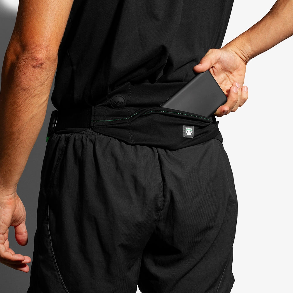 El cinturón también incluye tres bolsillos de lycra resistentes al agua para llevar tus objetos personales.