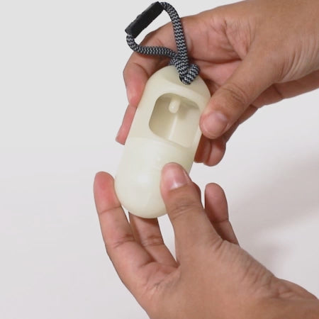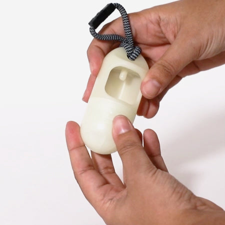 El Dispensador de Bolsas Higiénicas Fluorescente de Zee.Dog viene con un rollo de 15 bolsas compostables para recoger las necesidades de tu perro y brilla en la oscuridad, ideal para paseos nocturnos.