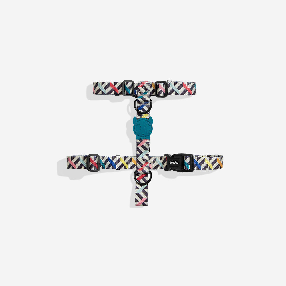 El Arnés en H Fritz está fabricado en poliéster ultrarresistente, el mismo material utilizado en cinturones de seguridad. Es totalmente ajustable en cuello y cintura, adaptándose fácilmente al cuerpo de tu perro, y cuenta con dos puntos de anclaje para la correa.
